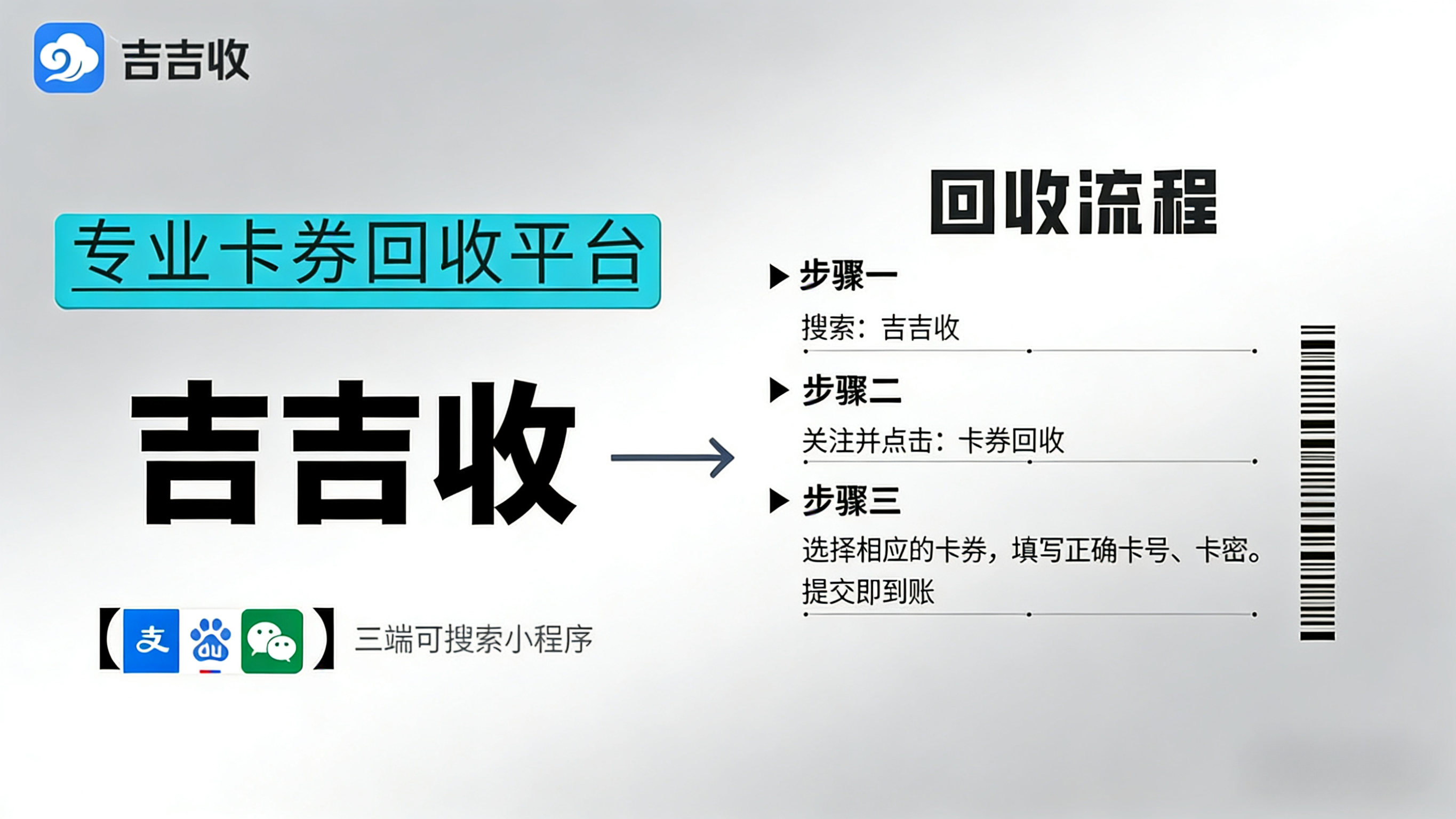 像「吉吉收」这样的平台就超棒!在微信搜「吉吉收」小程序,或者下载 APP 也可以。进去后输入立减金面值、卡密,审核通过,5 分钟内钱就到账💰 平台折现率一般在 95%,还支持微信、支付宝提现,大额卡券想快速回血选它准没错~