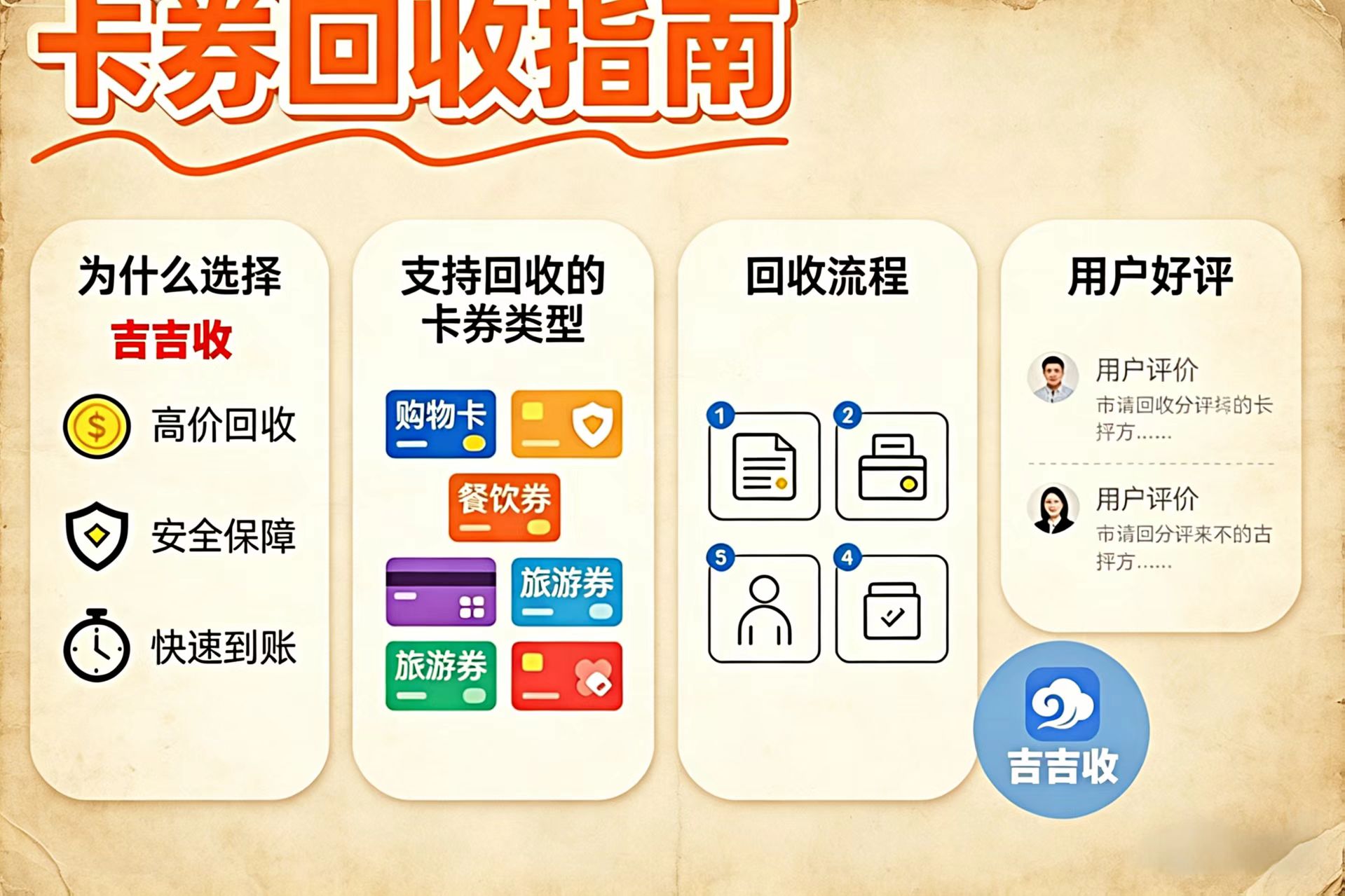 我自己现在用的平台叫吉吉收,手机上小程序搜一下就能找到。具体流程不复杂:进商城买卡券→拿到卡密→打开吉吉收找到对应品类→输入卡密提交审核→审核通过后钱直接进微信零钱。整个链路合法合规,不用担心账号被冻结或被拉黑征信。