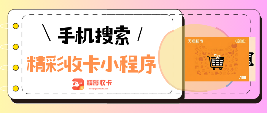 如果手里有闲置天猫超市卡,不妨试试精彩收卡平台,某信搜索 “精彩收卡” 小程序,无需下载 APP,提交信息后极速到账,安全又省心,让闲置卡券快速 “活” 起来!