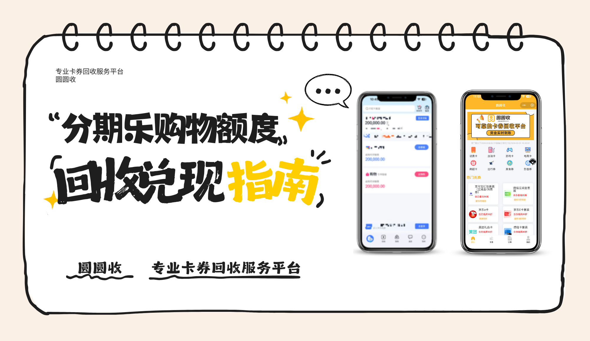 说到底,分期乐额度变现的核心就是“买卡券+合规回收”。只要选对卡券,再用圆圆收这种正规平台回收,整个过程既安全又高效。与其让额度闲着,不如花几分钟让圆圆收帮你变个现,需要的时候随时用,方便得很。